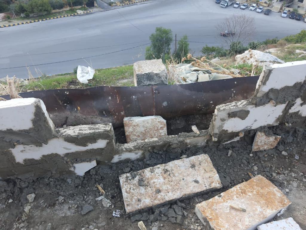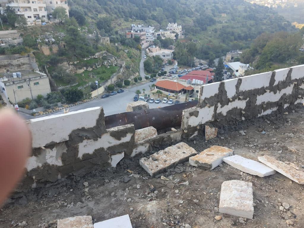 حيث قام المعتدين بهدم و تكسير أجزاء و واجهات من الجدار الحجري
