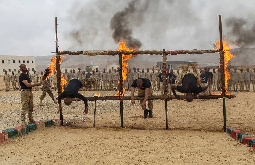 احتفل اليوم الخميس، في مدرسة الأمير هاشم بن الحسين للعمليات الخاصة، بتخريج دورتي الصاعقة التأسيسة ومدربي الصاعقة، بمشاركة ضباط وضباط صف وأفراد من مختلف صنوف القوات المسلحة الأردنية – الجيش العربي والأجهزة الأمنية، بحضور المفتش العام للقوات المسلحة الأردنية.