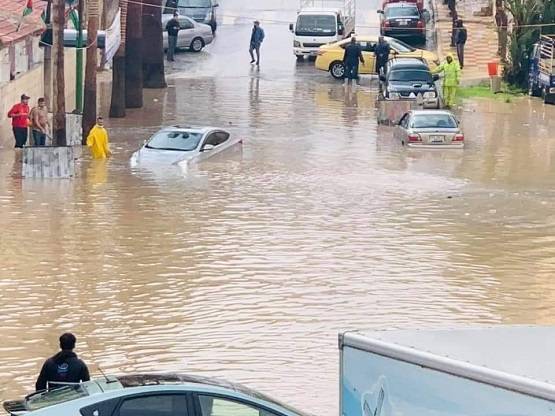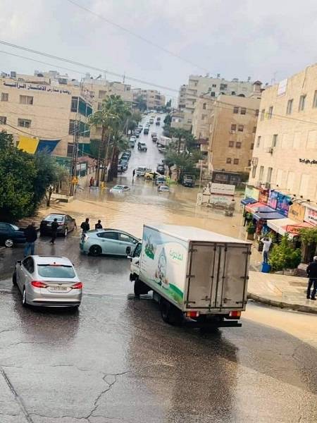 تسببت الأمطار الغزيرة اليوم السبت بغرق شارع بحي المدينة الرياضية في العاصمة عمان.