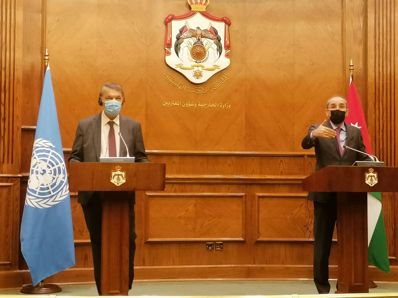 وفي تصريحات صحافية مشتركة عقب اللقاء، قال الصفدي أن الإجتماع جاء في إطار التنسيق المستمر بين الشركاء من أجل حماية الوكالة ومن أجل الحفاظ على قدرتها على القيام بواجباتها ومهامها الحيوية إزاء اللاجئين الفلسطينيين وفق تكليفها الأممي الذي جدده المجتمع الدولي بشكل غير مسبوق خلال التصويت في  الجمعية العامة للأمم المتحدة في شهر كانون أول 2019.