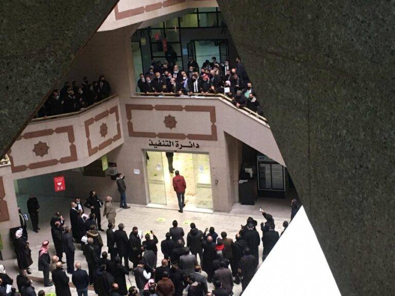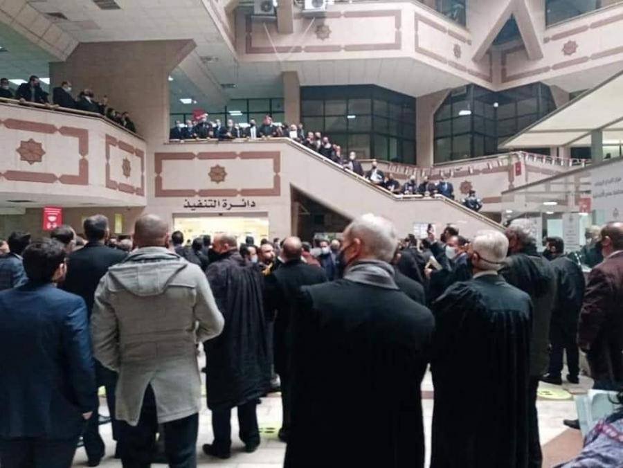 قام عدد كبير من المحاميين بالاحتشاد والتجمهر أمام قصر العدل وبمختلف محاكم المملكة صباح اليوم الأربعاء ، احتجاجاً على أمر الدفاع رقم 21 والذي يقضي بمنع الترافع وتأجيل جلسات الدعاوى في المحاكم النظامية التـي كانت محددة يوم الاربعاء الموافق 11/11/2020 ويوم الخميس الموافق12/11/2020 الى المواعيد التي يتم تحديدها وفقا لأحكام الفقرة (5) من هذا البند.