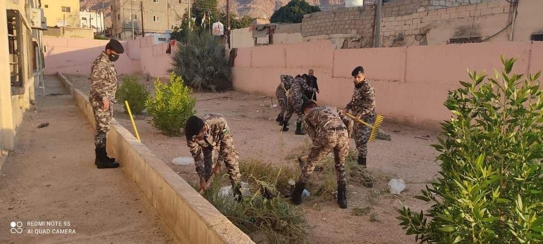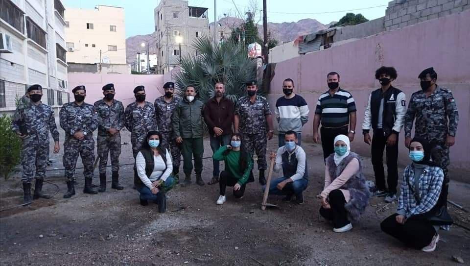 الدرك يساند مبادرة عالم ايجابي في العقبة لانشاء حديقة مدرسيه