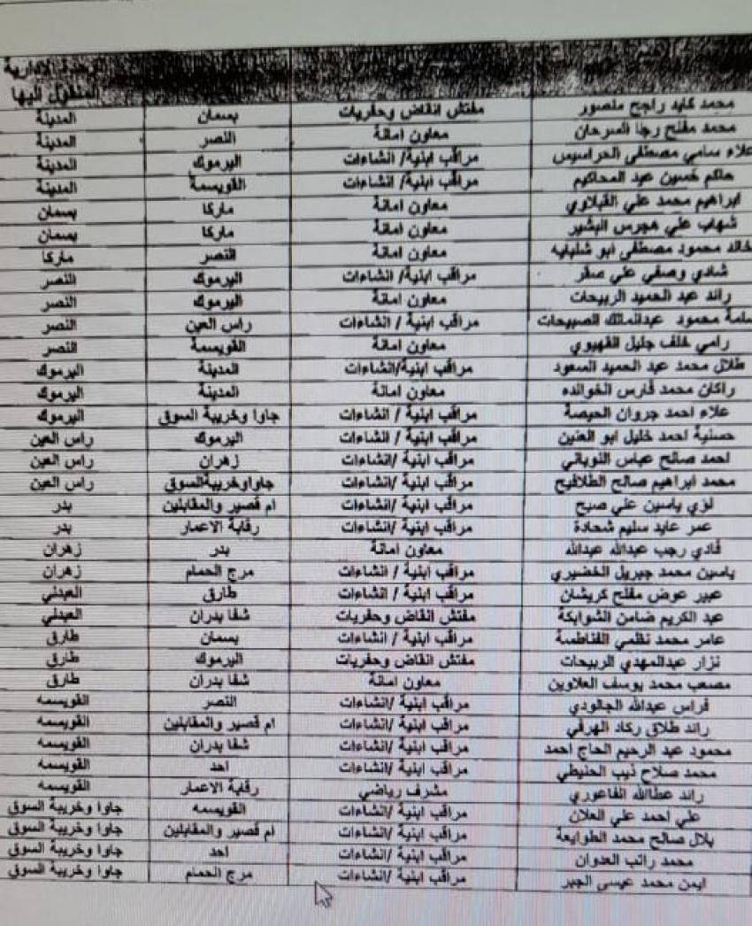 وشملت التنقلات مدراء ورؤساء أقسام ورؤساء شعب.