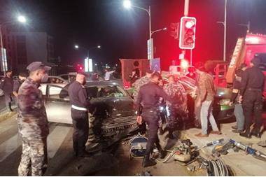أصيب ثلاثة أشخاص بإصابات مختلفة بحادث سير على إشارة الرحمة مول بالعقبة.