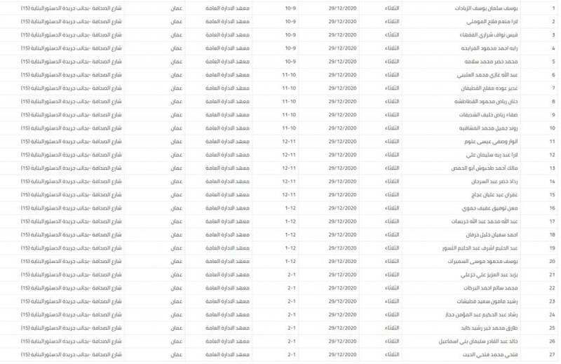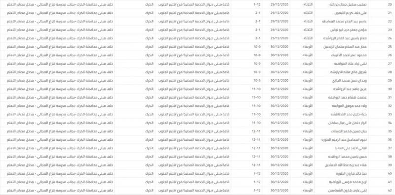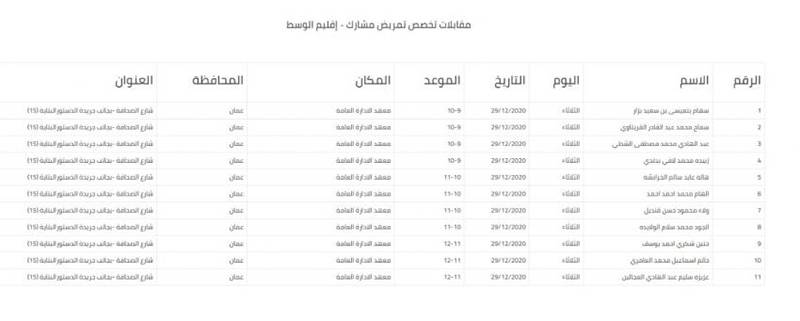 دعت وزارة الصحة وبالتعاون مع ديوان الخدمة المدنية الأسماء التالية، لحضور المقابلات الشخصية لوزارة الصحة خلال الفترة من 29/12/2020 -4/1/2021.
