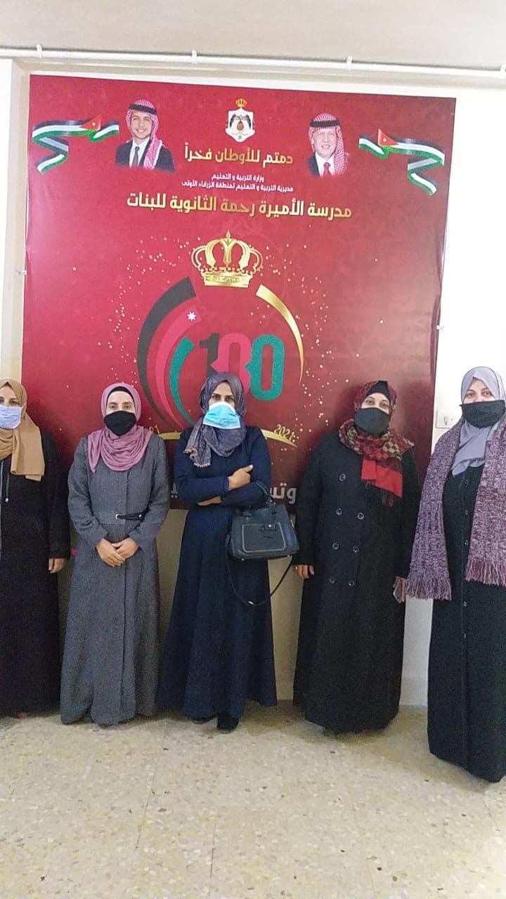 و كانت مدرسة الأميرة رحمة احتفت بمئوية الدولة الأردنية الهاشمية ضمن الشروط العامة التي تنتهجها وزارة الصحة في  تفادي فيروس كورونا قد التزمت بشأن ذلك  بشروط  التباعد و ارتداء الكمامات والتعقيم  .