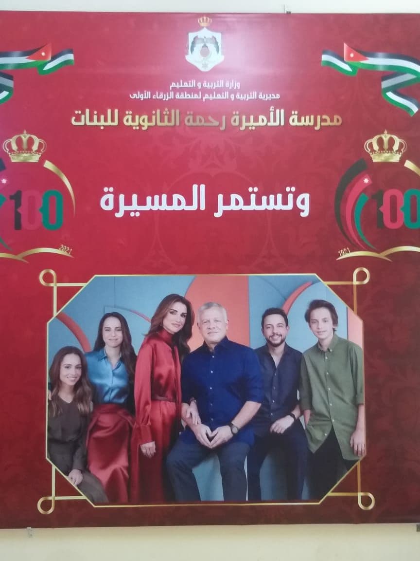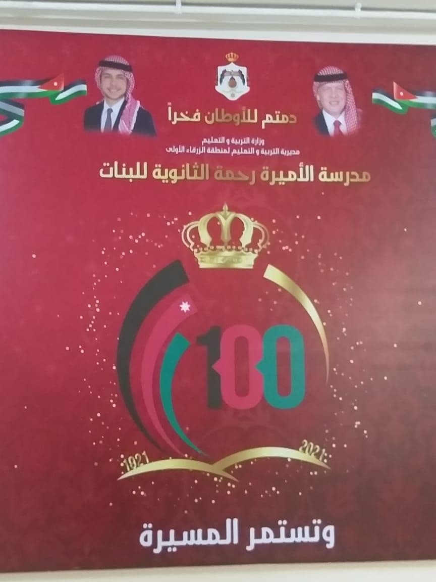 احتفت مدرسة الاميرة  رحمة الثانوية للبنات التي تديرها رجا  شعبان أمس الأحد    بمئوية الدولة الأردنية الهاشمية  بناءا على التعميم الذي صدر  من وزارة التربية والتعليم .