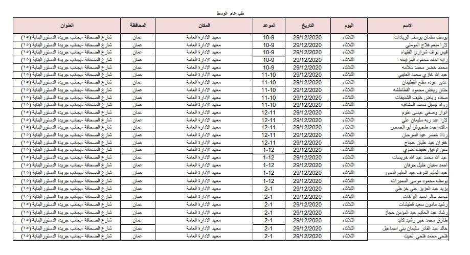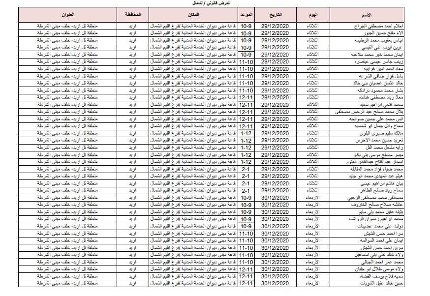 دعت وزارة الصحة بالتعاون مع ديوان الخدمة المدنية المرشحين من الذين تم اختيارهم وفقا لعلامة الامتحان التنافسي والمدرجة اسماؤهم، التواجد في الوقت والمكان المحدد وحسب ما هو مبين لإجراء المقابلة الشخصية.