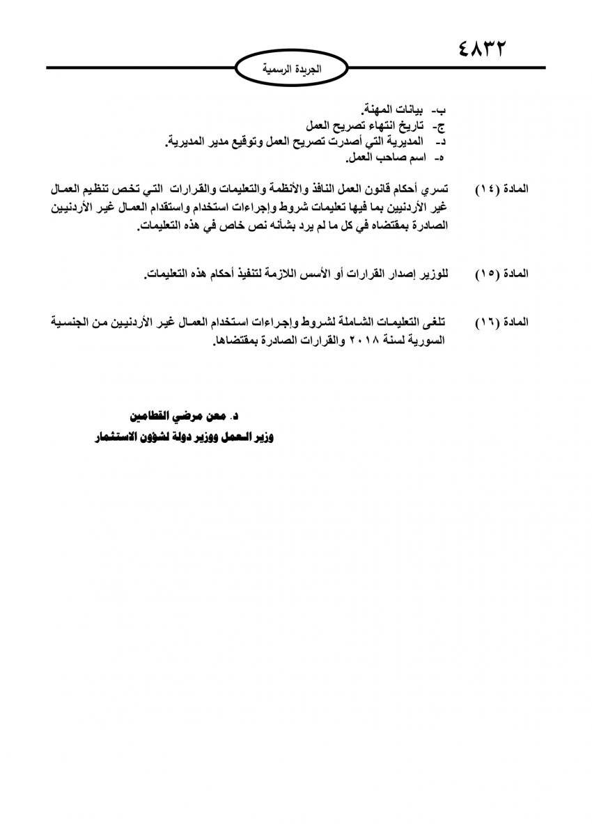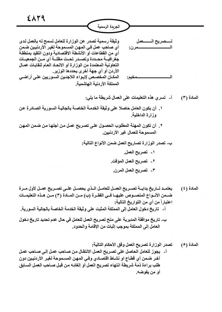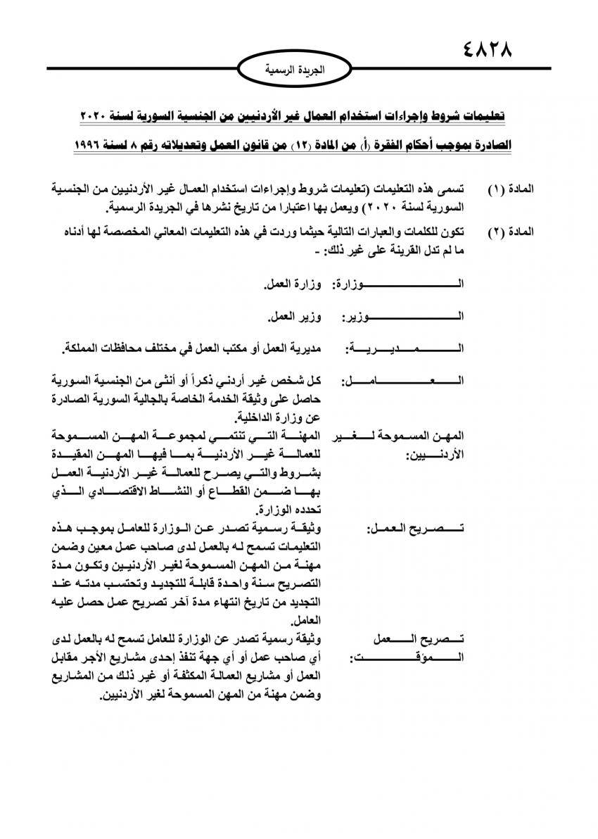 صدر في عدد الجريدة الرسمية، اليوم الخميس، تعليمات وإجراءات استخدام العمال من الجنسية السورية لعام 2020، وفقا لقانون العمل وتعديلاته.