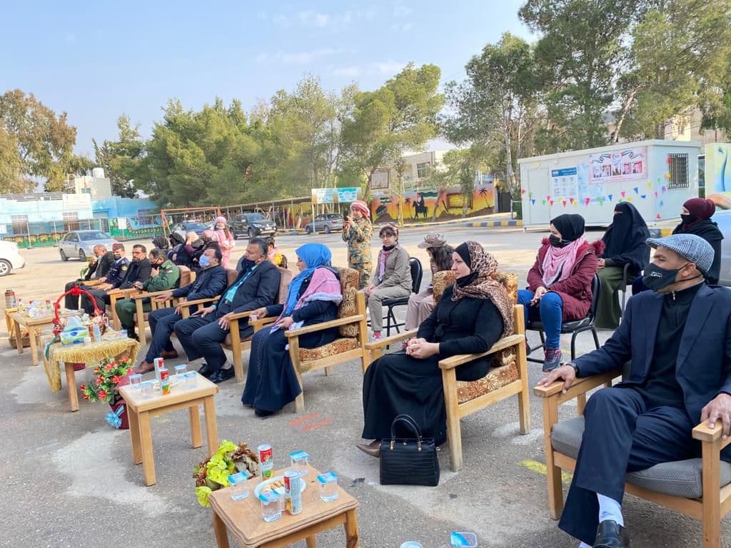 وكان الحفل برعاية عطوفة مدير التربية والتعليم للواء البادية الشمالية الغربية الدكتور حسن ملاك وعطوفة مدير قضاء السرحان الدكتور منذر بيك العكور وبحضور رئيس بلدية السرحان السيد المهندس خلف الزعيم وعضو مجلس محافظة المفرق المحامي ابراهيم عودة السرحان ورئيس مركز أمني سما السرحان الرائد عواد الرديني وممثل الشرطة المجتمعية الملازم رائد المساعيد ومديرة مركز شابات مغير السرحان الاستاذة امارات القضاه وممثل قسم النشاطات في مديرية التربية والتعليم الاستاذ جهاد الرويلي ومجموعة من معلمات المدرسة وطالبات المدرسة..