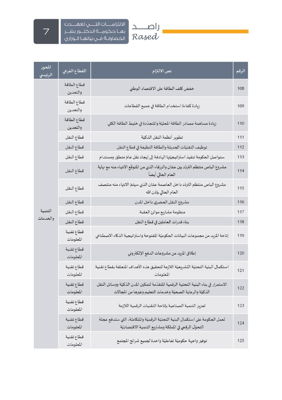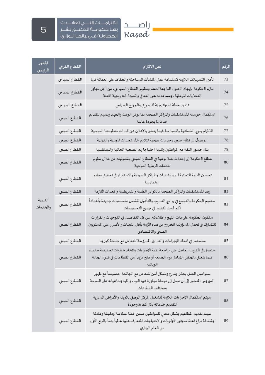 محور التنمية والخدمات الأكثر بعدد الالتزامات على مستوى المحاور في البيان الوزاري بـ 88 التزاماً.