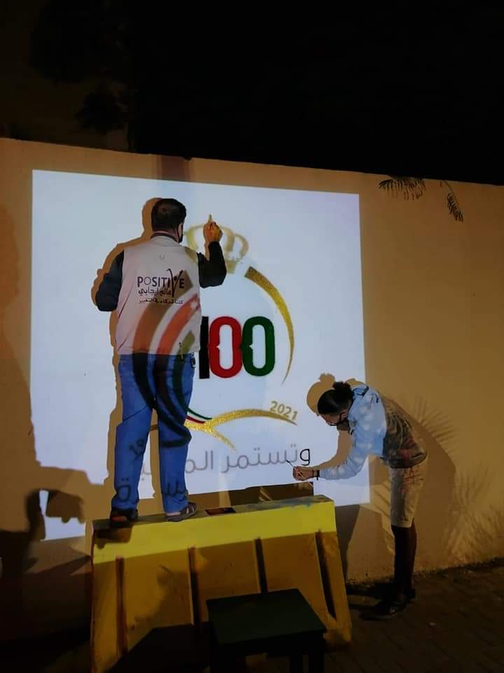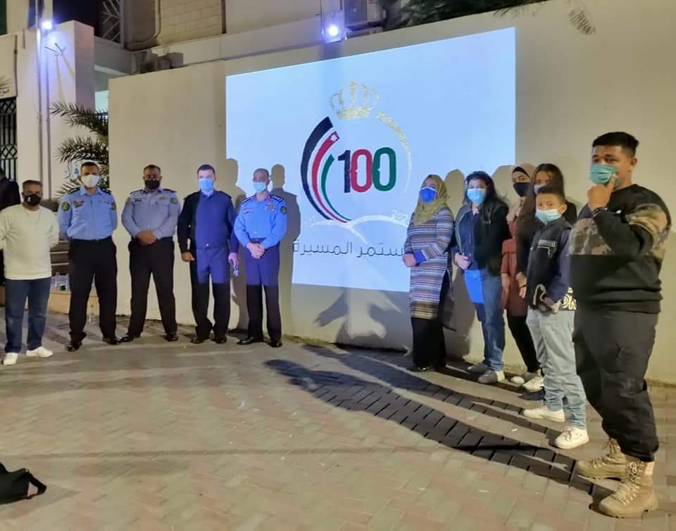 ضمن احتفالات المملكة بذكرى مئوية تأسيس الدولة الاردنية  قامت الشرطة المجتمعية في محافظة العقبة بالتنسيق  مع المبادرات الشبابية التطوعية(عالم ايجابي واترك اثر) برسم  شعار المئوية على كل من مبنى محافظة العقبة ومركز الاقامة والحدود وعلى شاطئ الغندور وسيتم تعميم هذا الشعار على العديد من المؤسسات في محافظة العقبة افتخارا وتقديرا بهذا الإنجاز للوطن في ظل القيادة الهاشمية.
