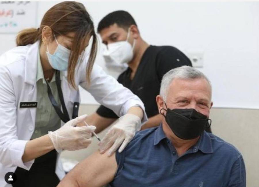 نشر سمو الأمير الحسين بن عبدالله الثاني، ولي العهد، صورة لجلالة الملك عبدالله الثاني أثناء تلقي جلالته اللقاح الخاص بفيروس كورونا.