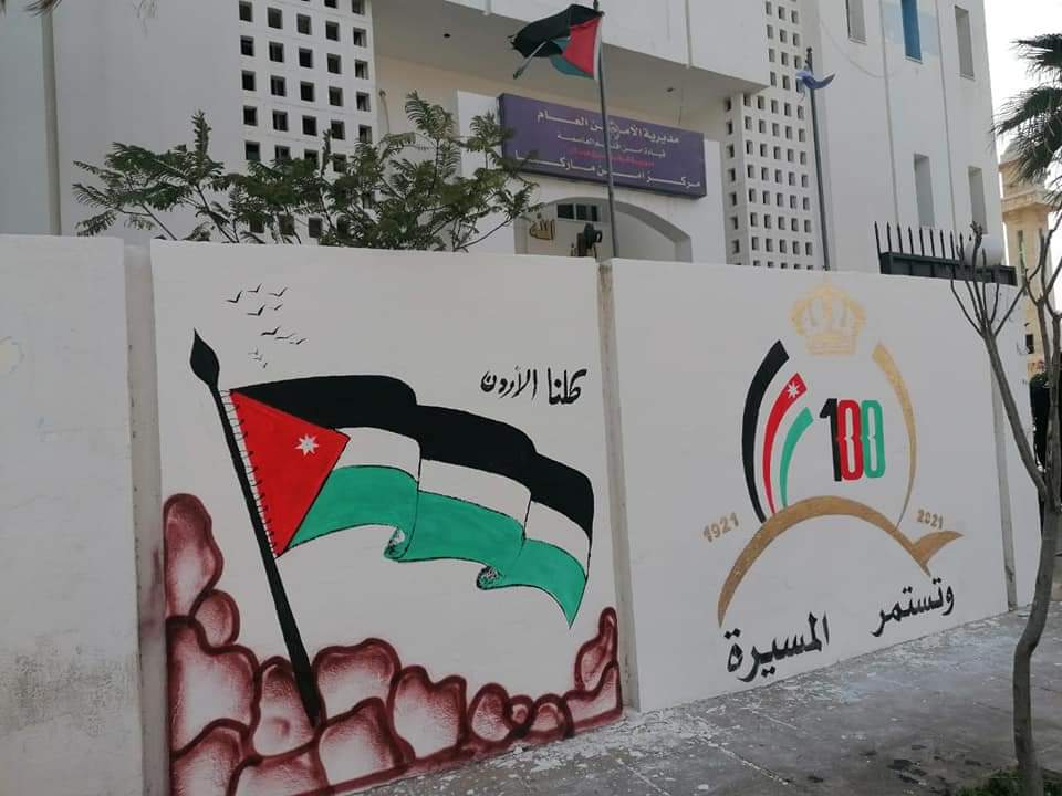 قام  أعضاء المجلس الأمني المحلي لمركز امن ماركا وبالتنسيق مع الشرطة المجتمعة برسم جدارية لمئوية الدولة الأردنية على جدار المركز الأمني .