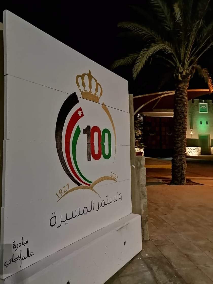 يذكر ان مبادرة عالم ايجابي في العقبة قد اطلقت منذ بداية العام 2021 ضمن انشطتها حملة رسم شعار مئوية المملكة الأردنية الهاشمية لتزين جدران العقبة وقد عمل المتطوعون فيها على مدار الايام الماضيه لتجميل معظم المناطق بشعار المئوية مما جعل العديد من الجهات تحذو حذو المبادرة لرسم الشعار في مناطق مختلفه.