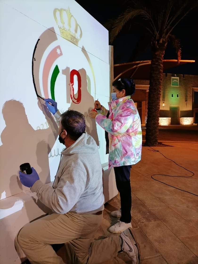 عالم ايجابي يزين مدخل القصور الملكية في العقبة بشعار المئوية