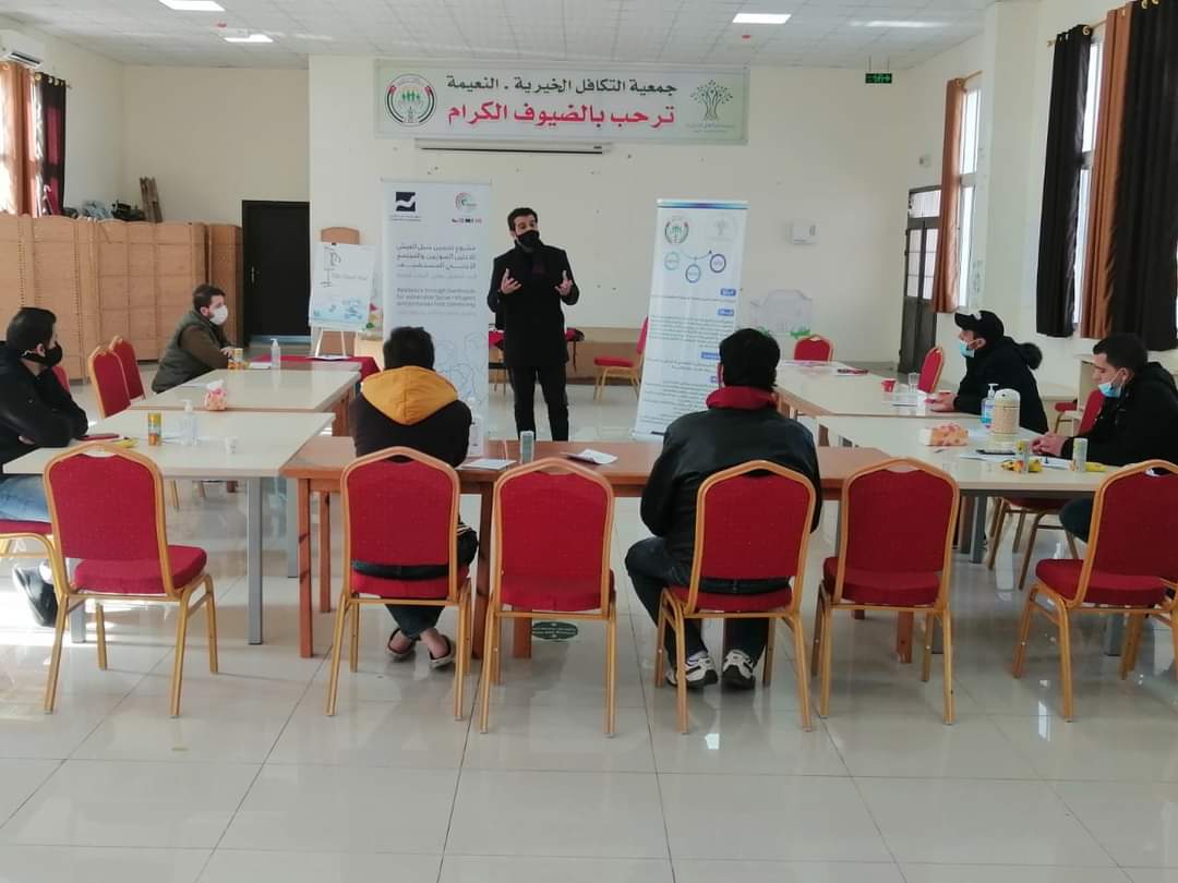 استضافت جمعية التكافل الخيرية في النعيمة جلسة تثقيفية لمجموعة من الشباب ضمن مشروع تحسين سبل العيش للاجئين والمجتمع الأردني المضيف الذي تُنفذه مؤسسة نهر الأردن بالشراكة مع جمعية التكافل الخيرية وغيرها من الجمعيات المحلية في محافظات اربد والمفرق وعمان والكرك والعقبة.