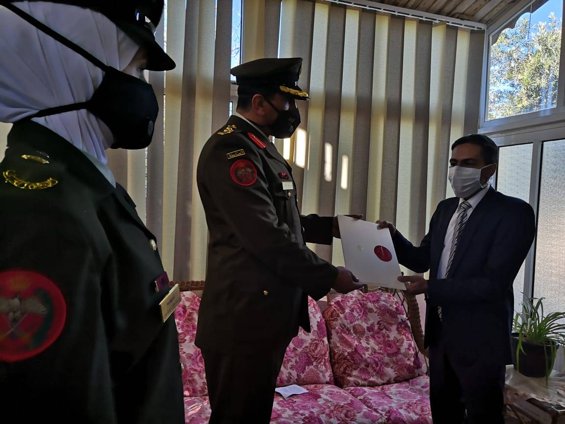 عدد من كبار ضباط الأمن العام الى جانب عدد من إخوانهم من كبار ضباط القوات المسلحة- الجيش العربي، مضوا اليوم يحملون بشرف وأمانة، رسائل ملكية سامية من لدن جلالة الملك عبدالله الثاني، القائد الأعلى للقوات المسلحة، تحمل تكريماً ملكياً لأسر من ضحوا وارتقوا إلى بارئهم دفاعاً عن صحتنا، من الجيش الأبيض - الكوادر الطبية، رحمهم الله جميعاً وأسكنهم فسيح جناته مع النبيين والصديقين والشهداء والصالحين وحسن أولئك رفيقا.