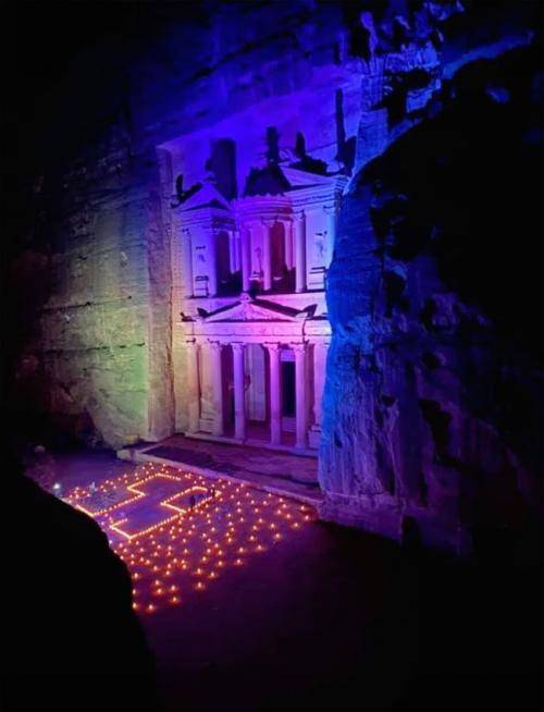 أضاءت سلطة إقليم البترا مساء اليوم السبت، مدينة البترا الأثرية، ممثلة بمعلم الخزنة بالشموع احتفاءً بعيد ميلاد جلالة الملك عبدالله الثاني ابن الحسين.