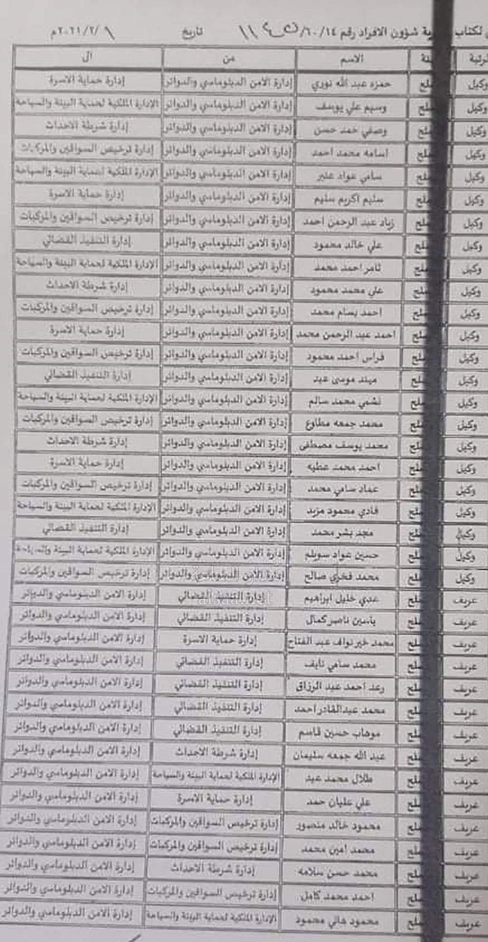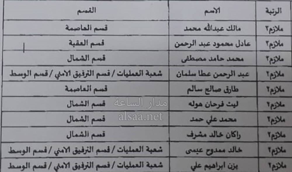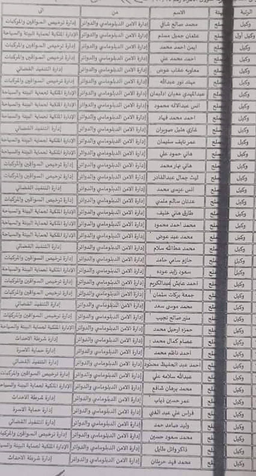 صدرت قائمة تنقلات لعدد محدود من الضباط ولأفراد في مديرية الأمن العام.