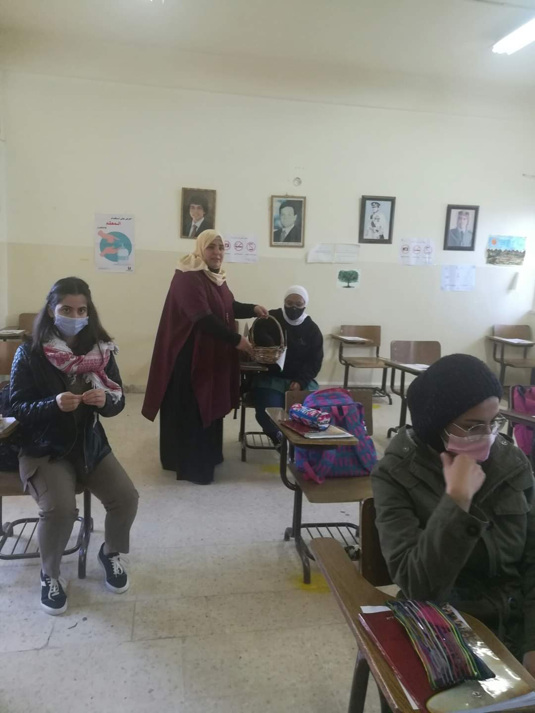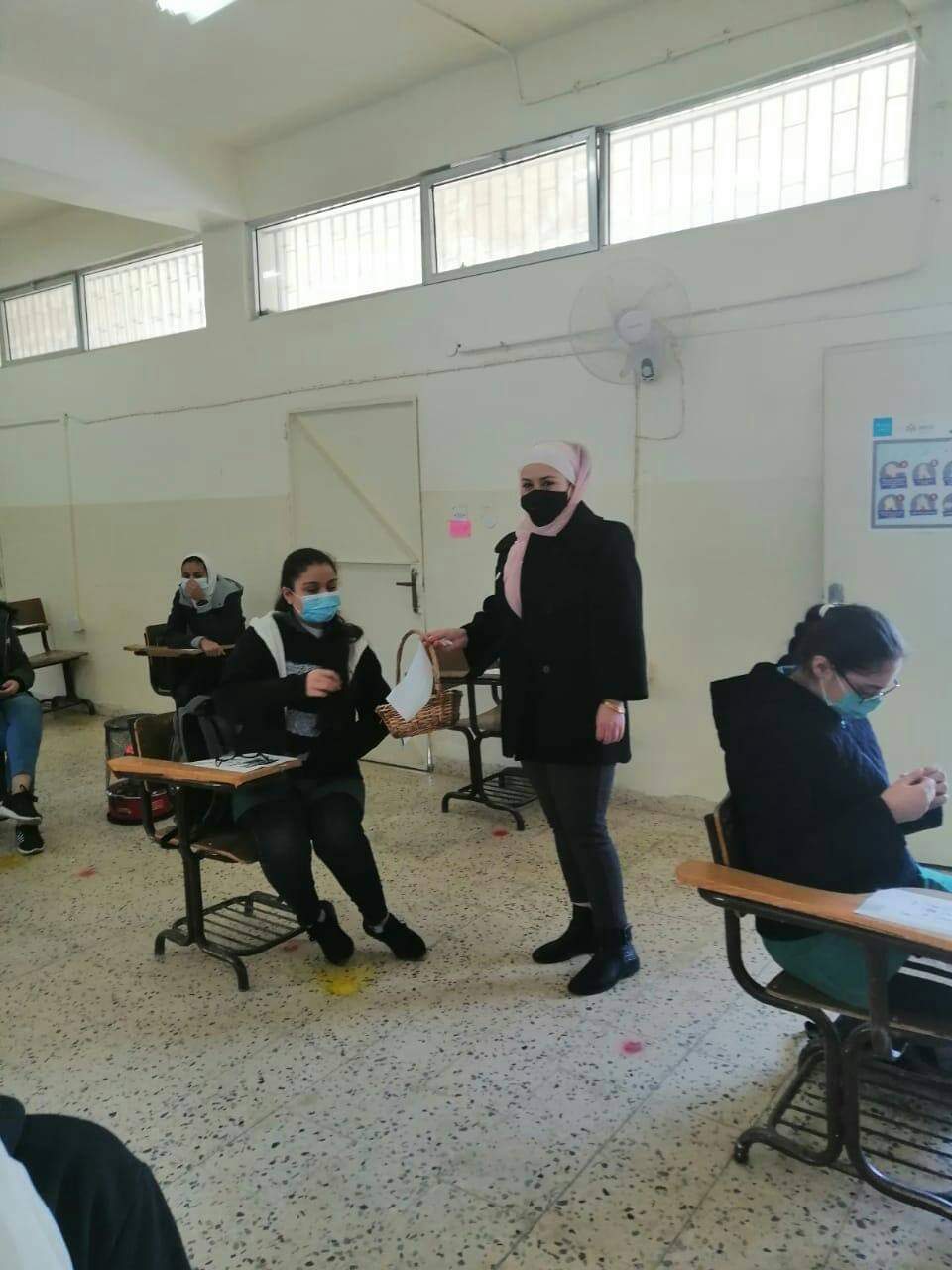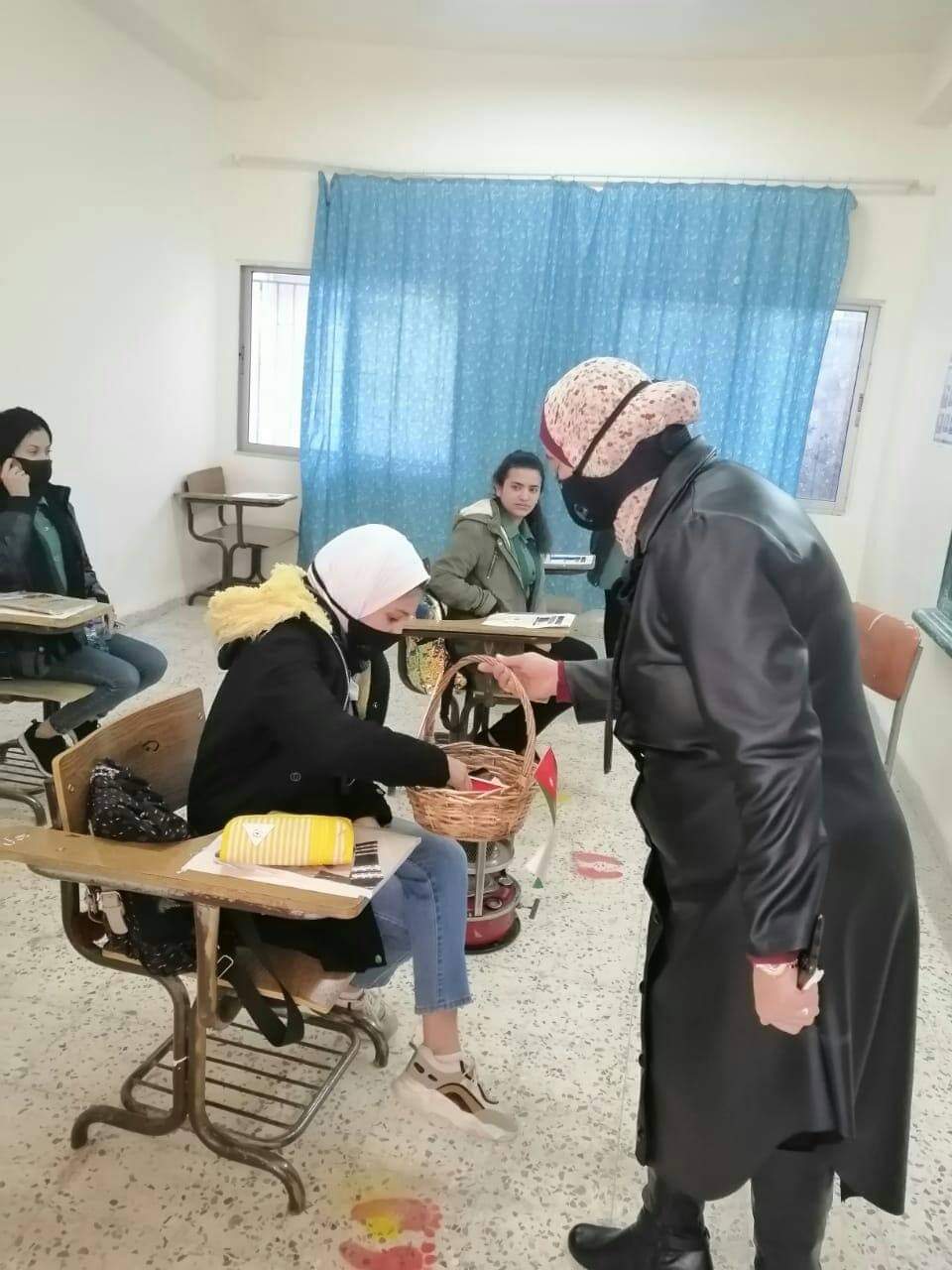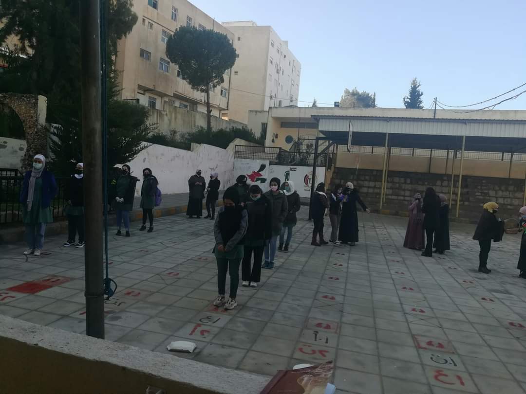 استقبلت مديرة المدرسة عبلا عطيات والهئتين الإدارية والتدريسية الطالبات بالابتسامة والتشجيع وقامت اللجنة الصحية بقياس درجة حرارة الطالبات و توزيع الكمامة على الطالبات والصاق المنشورات التوعوية على الصفوف ومتابعة عملية التعقيم.