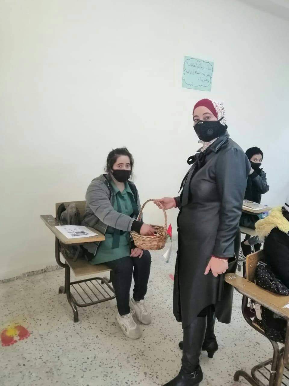 وقامت اللجنة الإدارية بمبادرة لطيفة بمناسبة مئوية الدولة الأردنية الهاشمية حيث وزعت على الطالبات دبوس شعار المئوية وهدية رمزية للمديرة .