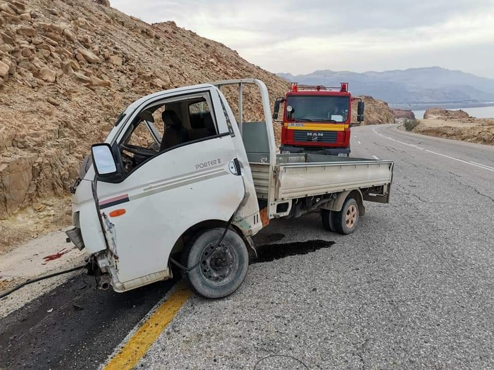 وفاة شخص وأربع إصابات آخرين إثر حادث تصادم بالقرب من جسر الموجب باتجاه عمان.
