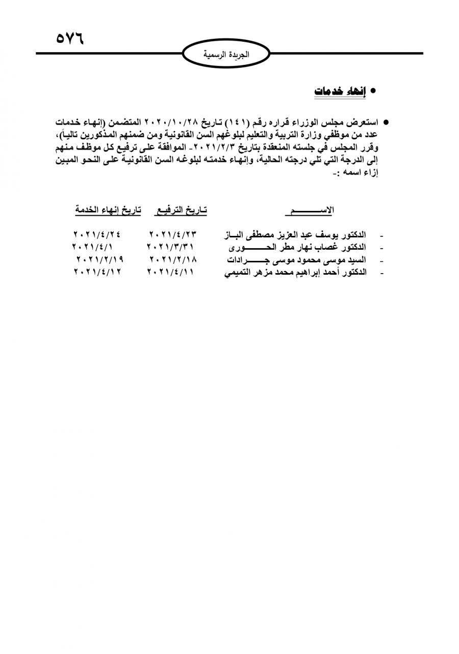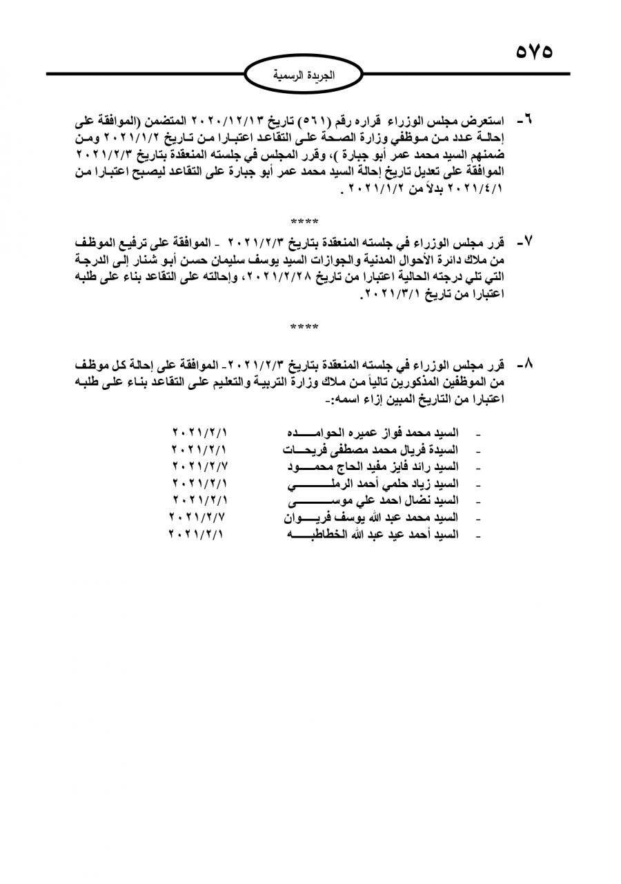 صدر في عدد الجريدة الرسمية اليوم الثلاثاء، بإحالة عدد من موظفي الدولة الى التقاعد، وانهاء خدمات آخرين.