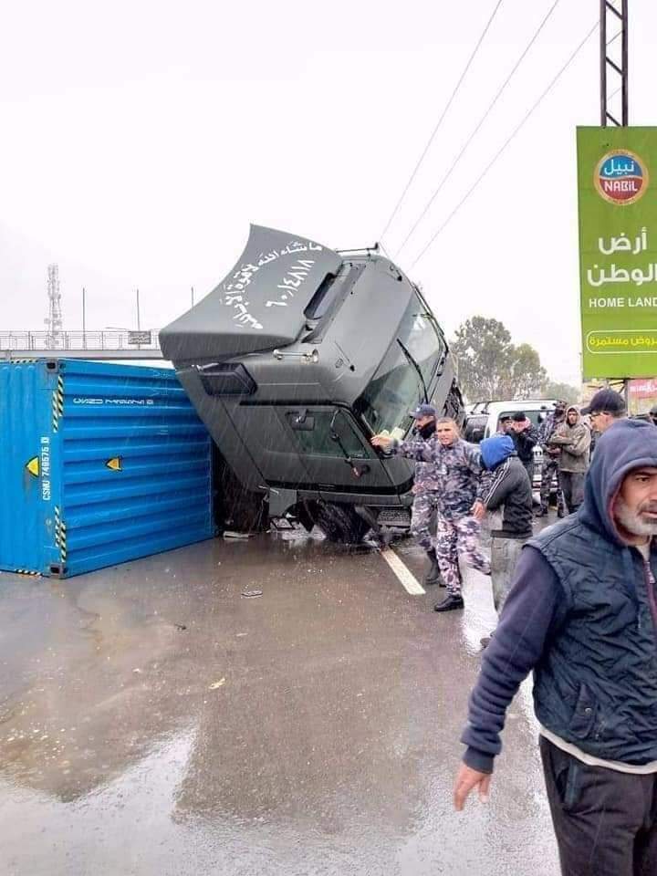 إنقلاب شاحنة يتسبب بإغلاق الطريق الرئيسي الذي يربط عمان بمحافظات الجنوب