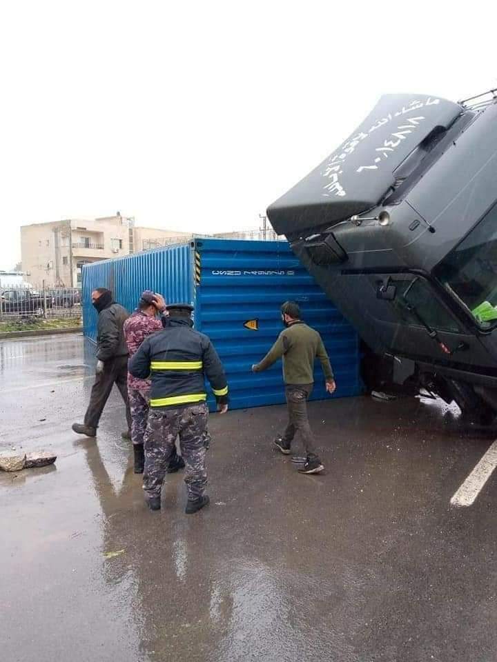 وقال شهود عيان أن الحادث كان نتيجة فقدان السائق السيطرة على الشاحنة، ما أدى إلى انقلابها على المسرب الآخر وأغلقت الطريق.