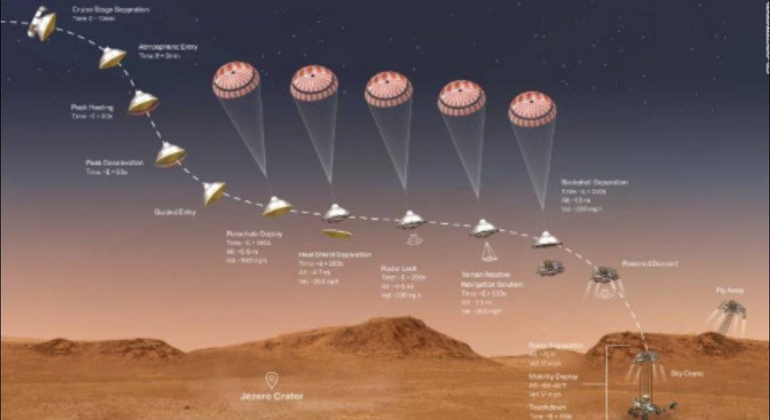 نيروز الإخبارية : اخترقت مركبة الفضاء (برسيفيرانس) التابعة لإدارة الطيران والفضاء الأمريكية (ناسا) الغلاف الجوي للمريخ اليوم الخميس وهبطت بسلام على سطح حفرة شاسعة، في أول محطة لها بحثا عن علامات على حياة ميكروبية قديمة على الكوكب الأحمر.