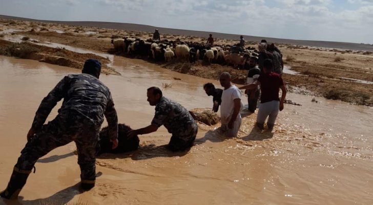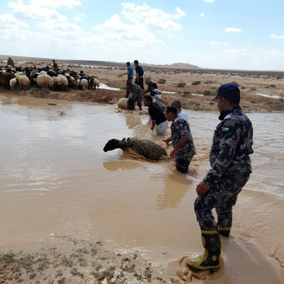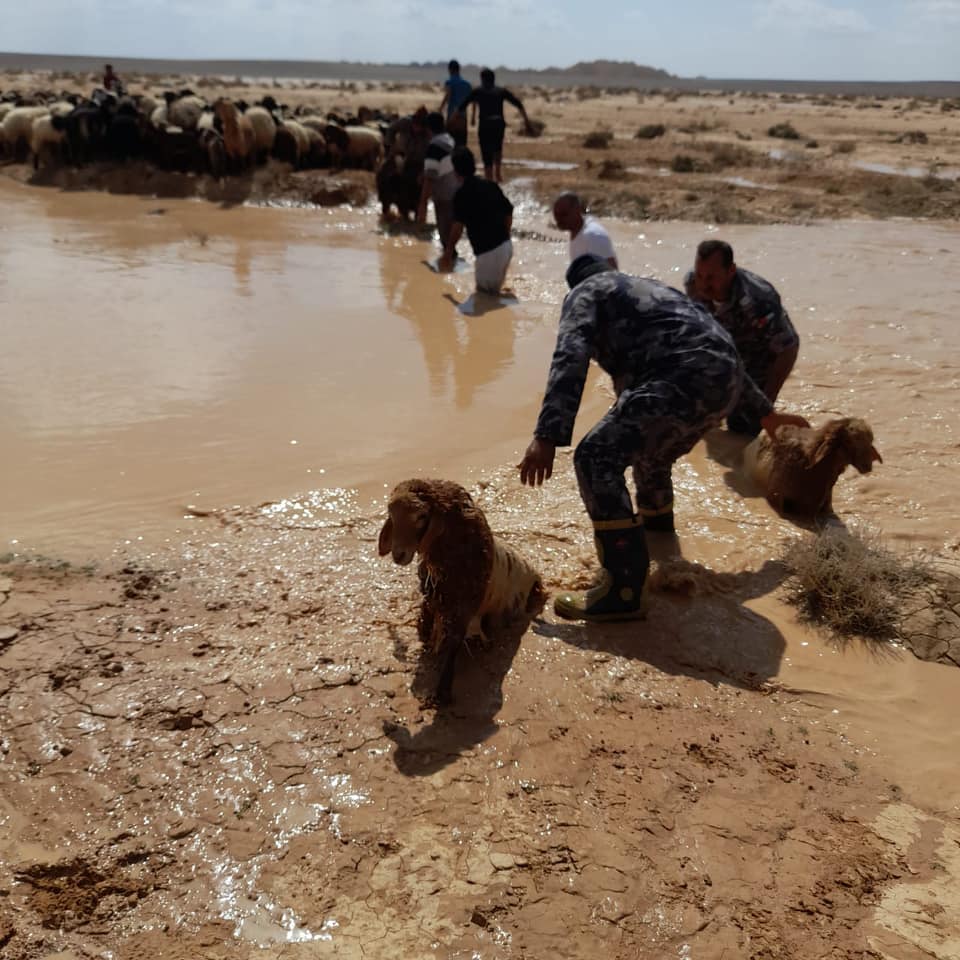 أنقذت كوادر الدفاع المدني 45 رأس من الأغنام على الطريق الصحراوي، بسبب سقوطهم في بركة تجمع مياه الأمطار في منطقة سد الصخريات.