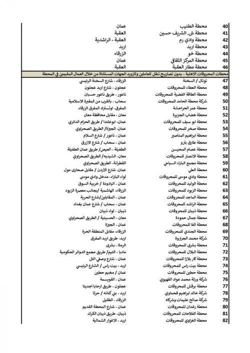 أعلنت وزارة الطاقة والثروة المعدنية عن محطات المحروقات العاملة خلال حظر التجول الشامل الجمعة