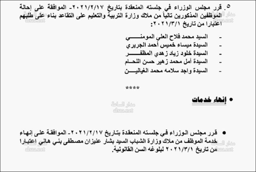 إحالات وإنهاء خدمات موظفين حكوميين (أسماء)