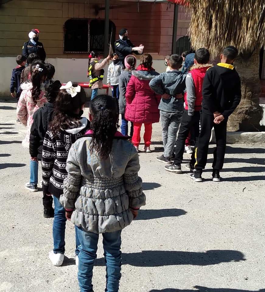 ضمن الدور الذي تقوم به إدارة الدوريات الخارجية في رفع مستوى الوعي والتثقيف المروري لدى كافة شرائح المجتمع، تم إعطاء محاضرة توعية مرورية في روضة ومدرسة ربوع مؤتة في منطقة خريبة السوق، مع مراعاة شروط السلامة العامة للوقاية من فيروس كورونا.