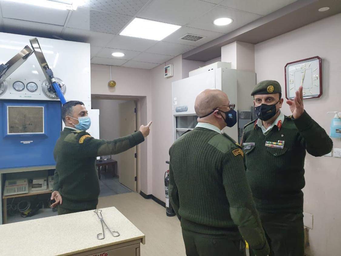 تفقد مدير عام الخدمات الطبية الملكية العميد الطبيب عبدالله عميش، عدداً من مرافق مدينة الحسين الطبية والمستشفى الميداني -الجويدة.