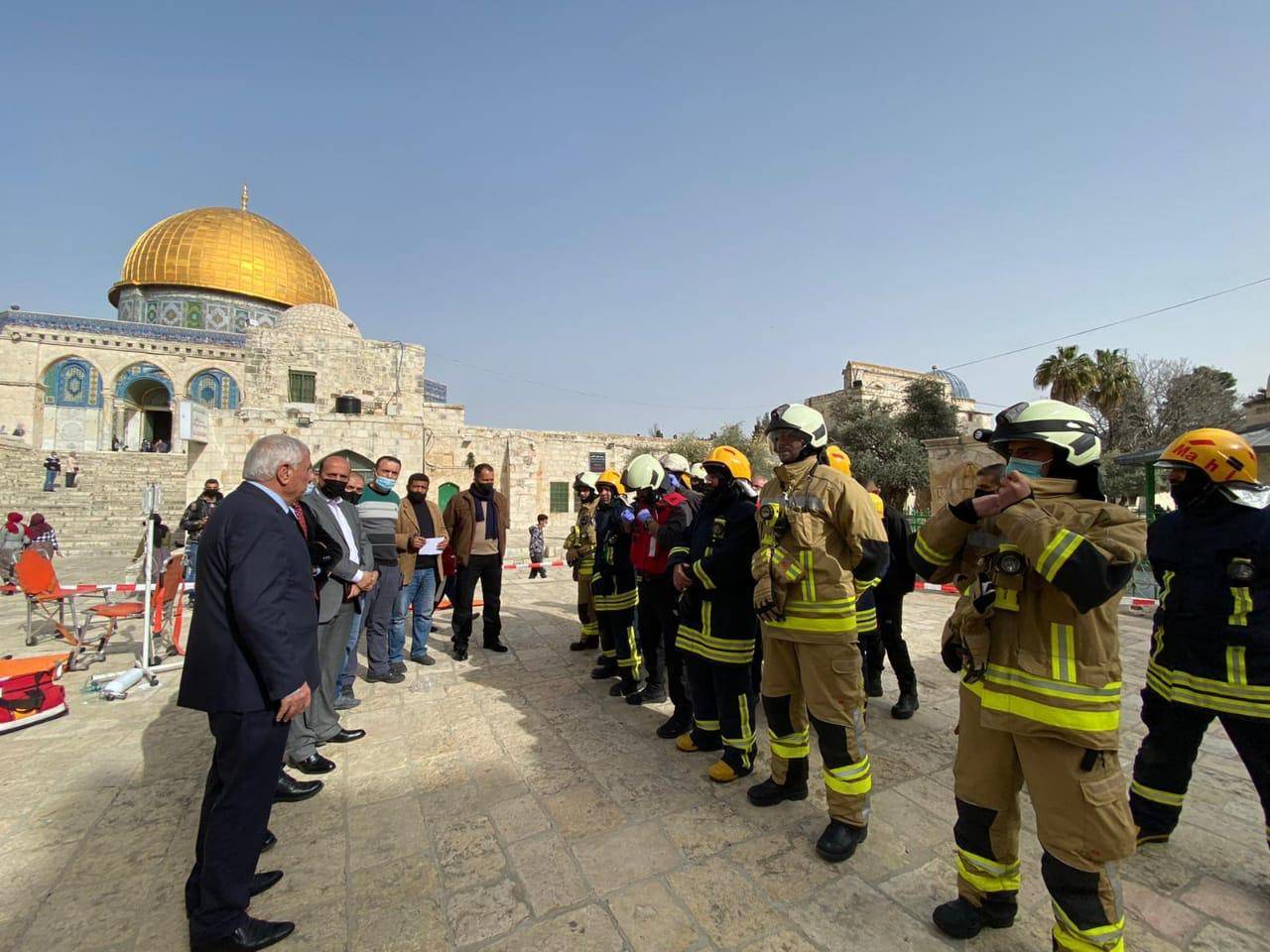 الدفاع المدني يعقد دورةً تدريبةً لطواقم الإطفاء في المسجد الأقصى ويتفقد نظام الإنذار داخل المسجد