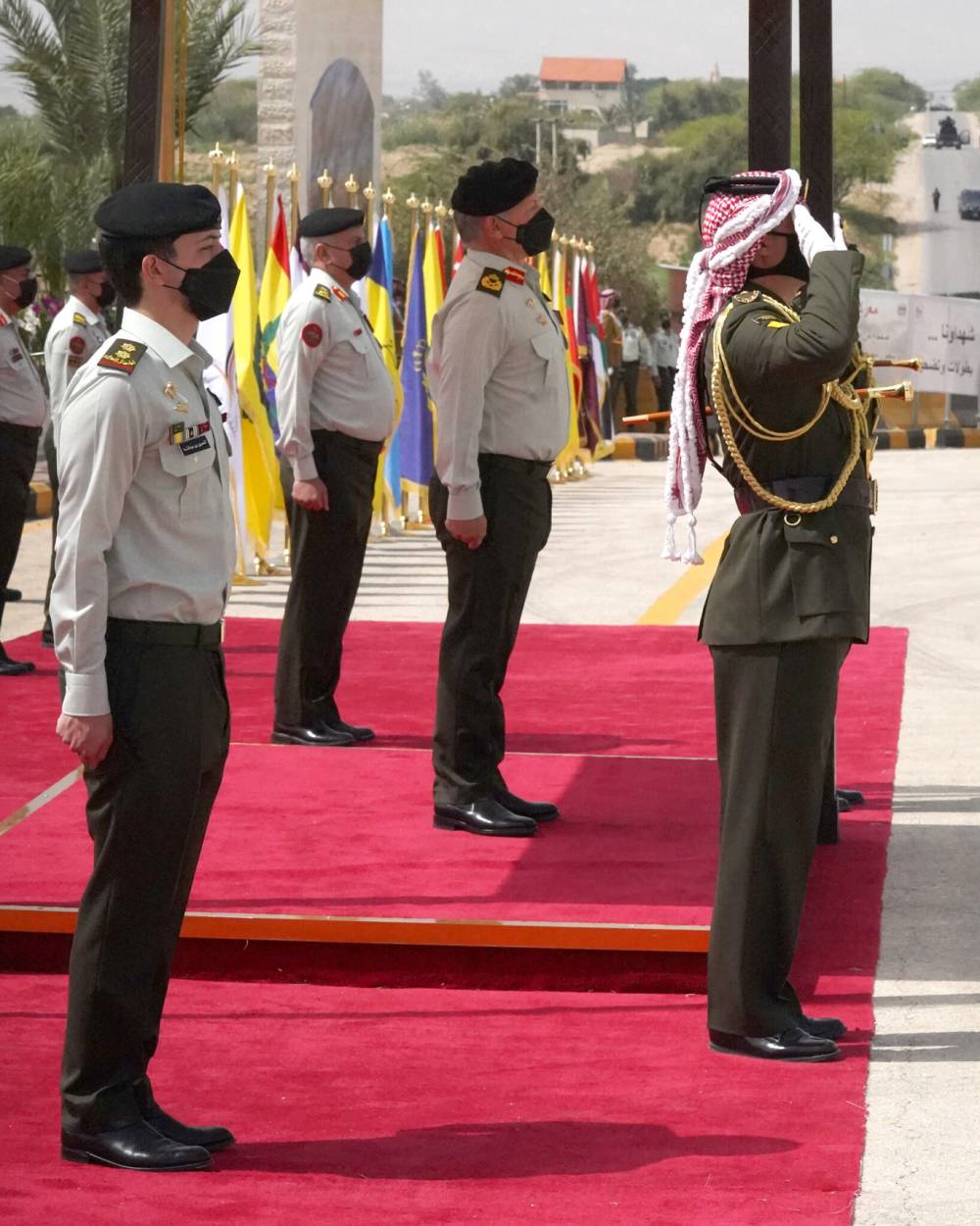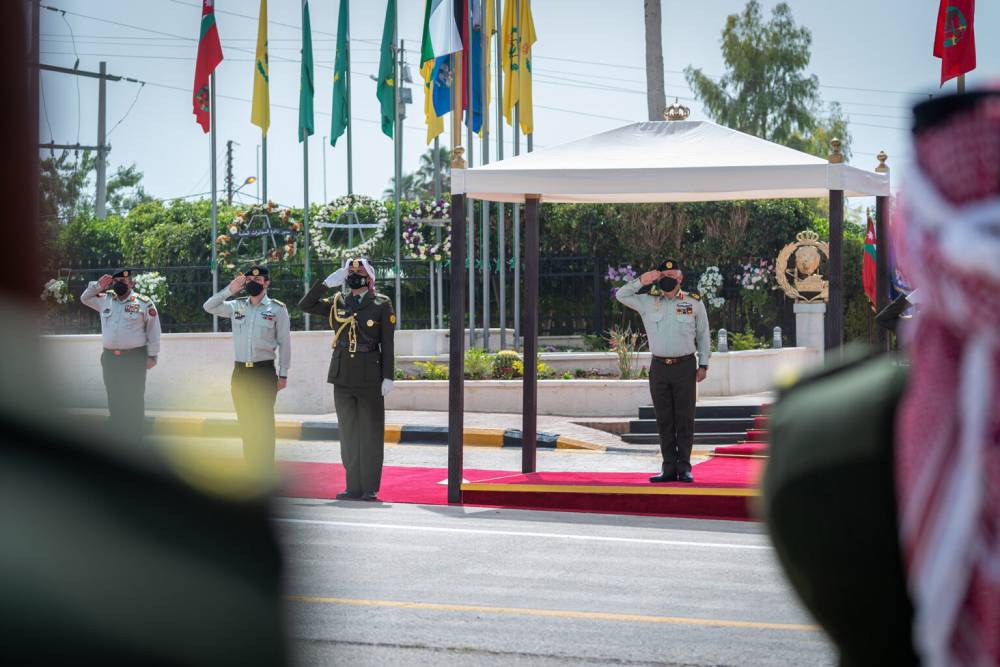 ولدى وصول جلالة القائد الأعلى، موقع الصرح التذكاري، أطلقت المدفعية إحدى وعشرين طلقة تحية لجلالته، حيث كان في استقبال جلالته، رئيس هيئة الأركان المشتركة.