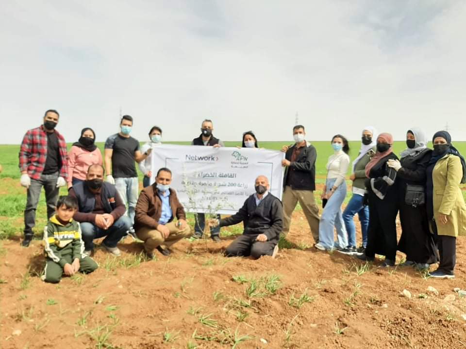 بمشاركة فاعلة ودعم من نتورك انترناشيونال عن طريق نوى - إحدى مبادرات مؤسسة ولي العهد، زرعت العربية لحماية الطبيعة 200 شجرة مثمرة لصالح أحد صغار المزارعين المتعثرين في منطقة الفيحاء - محافظة مادبا، بالتعاون مع جمعية سيدات مادبا، ضمن برنامج القافلة الخضراء (11 آذارمارس 2021).