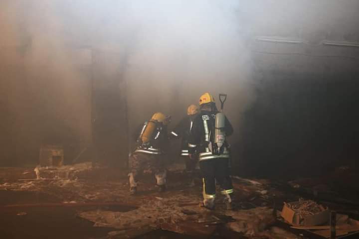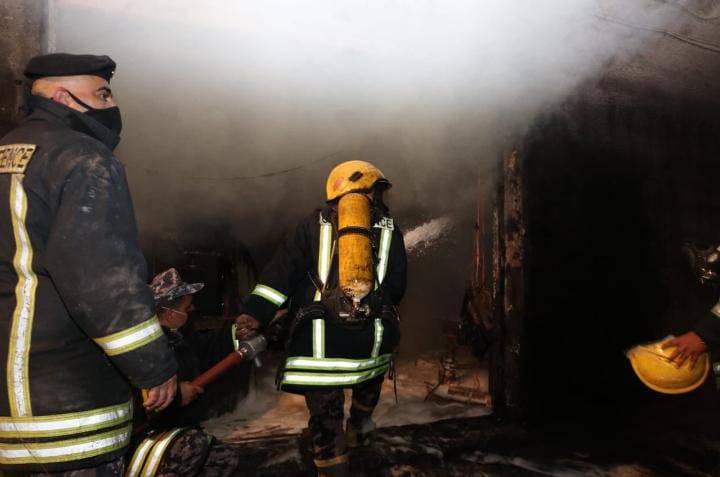 الدفاع المدني يخمد حريق منجرة في العاصمة... صور