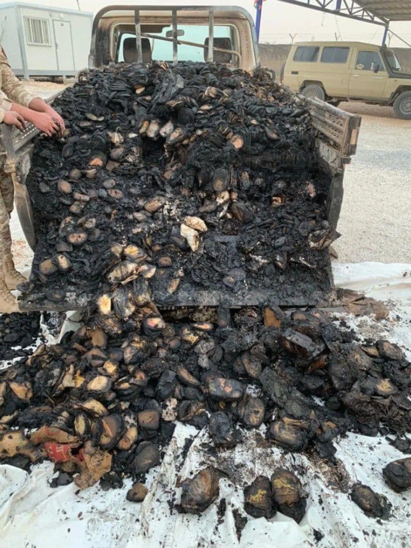 وبين المصدر أنه وبعد تفتيش المركبة تم ضبط (765) كيلو حشيش و(3.280.000) حبة كبتاجون وذخيرة أسلحة نارية، إضافةً إلى عدد من المواد المخدرة التالفة بسب احتراق المركبة، وتم تحويل المضبوطات إلى الجهات المختصة.