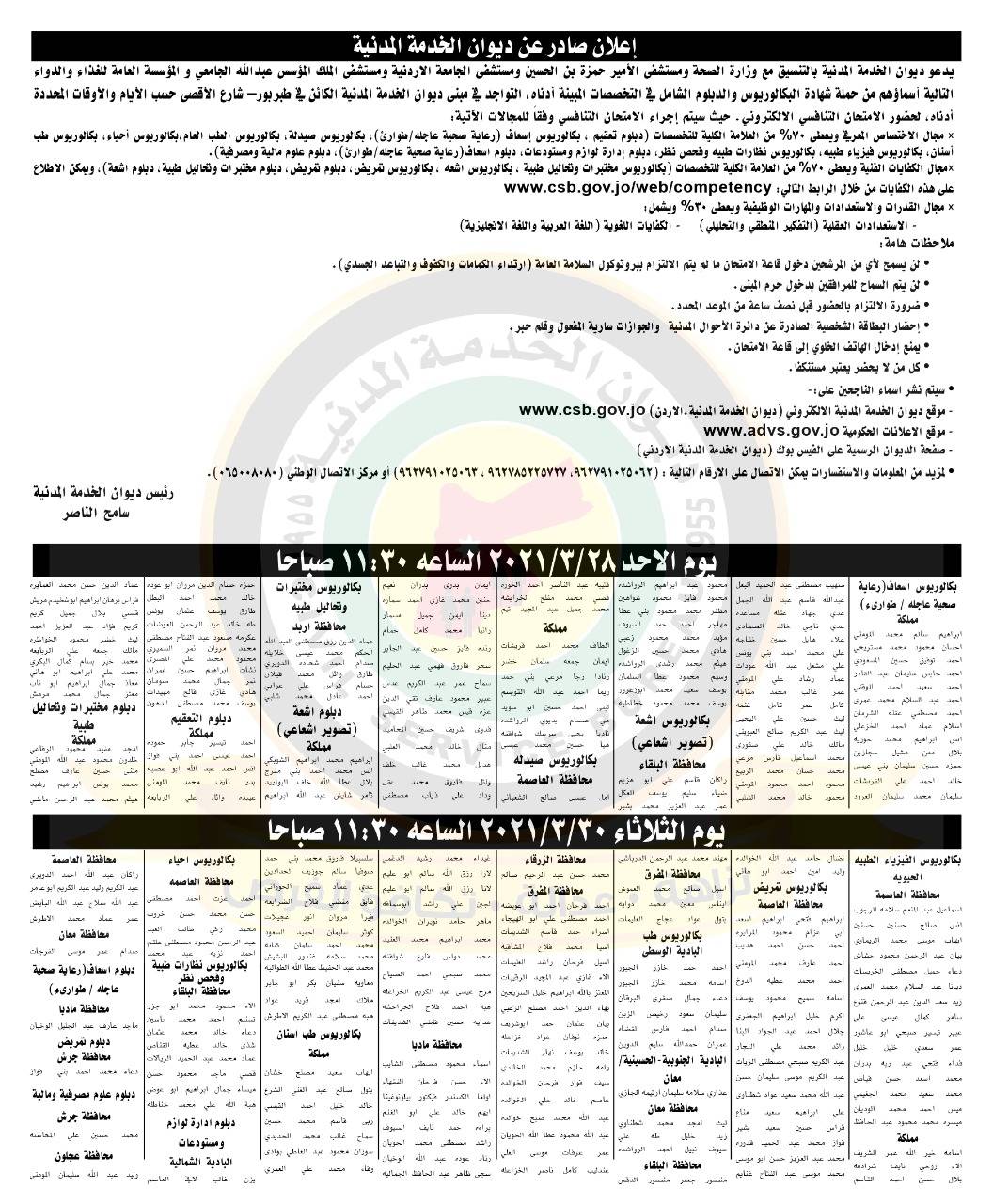 وأكد الديوان، أنه على المرشحين التواجد في مبنى الديوان الكائن في منطقة طبربور بالعاصمة.