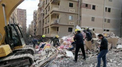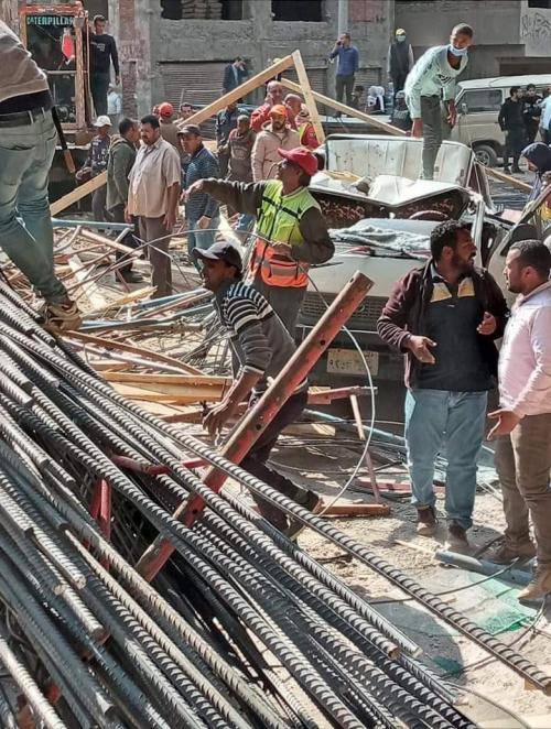 وظهر خلال البث المباشر الخاص بمصراوي، حمل الأوناش سيارة ميكروباص وأخرى ملاكي محطمتين، إثر سقوط السقالات عليهما.