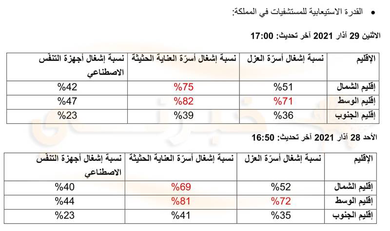 *نسبة إشغال أسرّة العناية الحثيثة في إقليم الشمال 75% مقارنة 69% يوم الاحد.