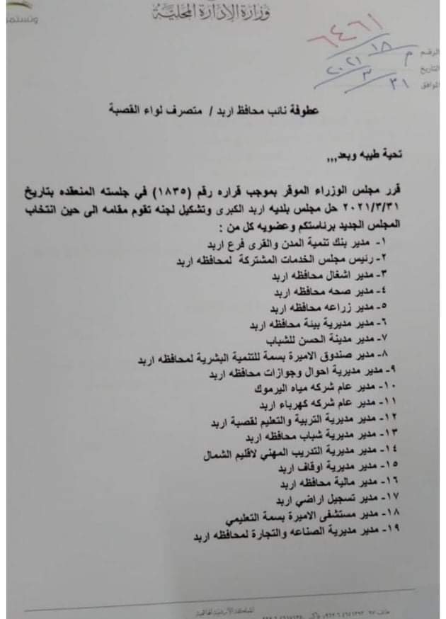 لجان مؤقتة لادارة بلديات في إربد وجرش .. اسماء