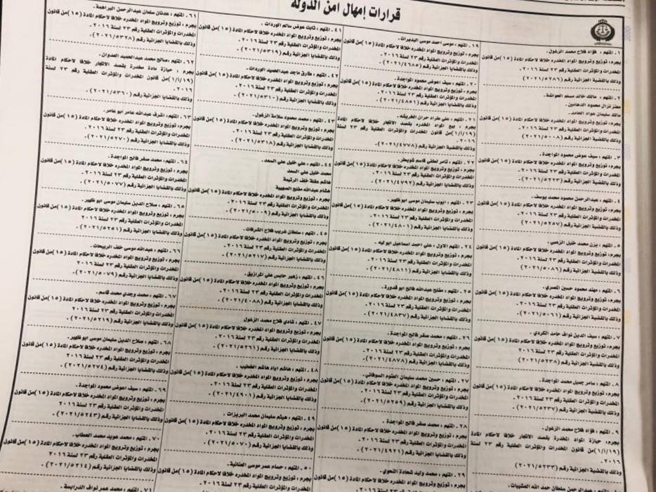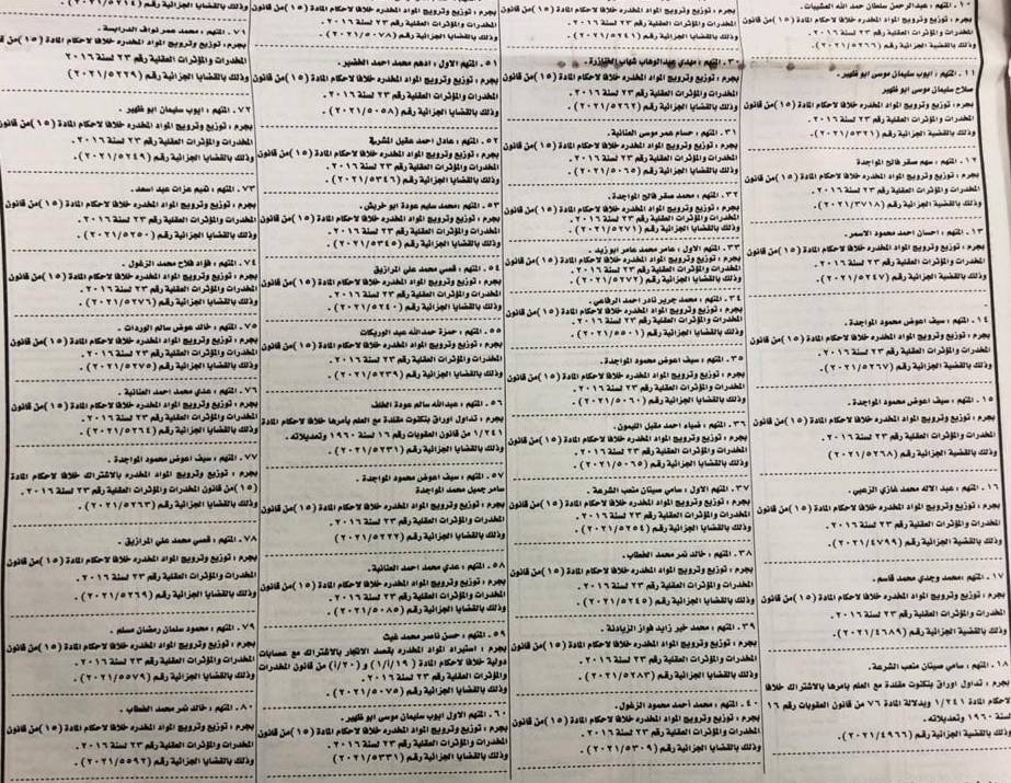 ونشرت المحكمة، اليوم الأحد، أسماء المتهمين، عملا بأحكام المادة 243 /2 من قانون أصول المحاكمات الجزائية رقم 9 لسنة 1961.