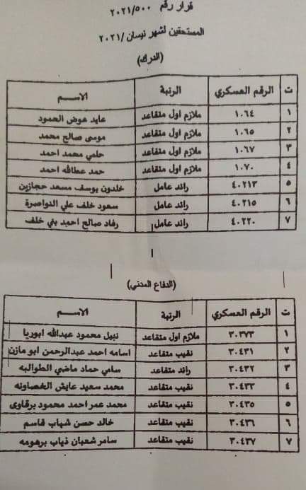 أسماء المستفيدين من قروض الإسكان العسكري للدفاع المدني