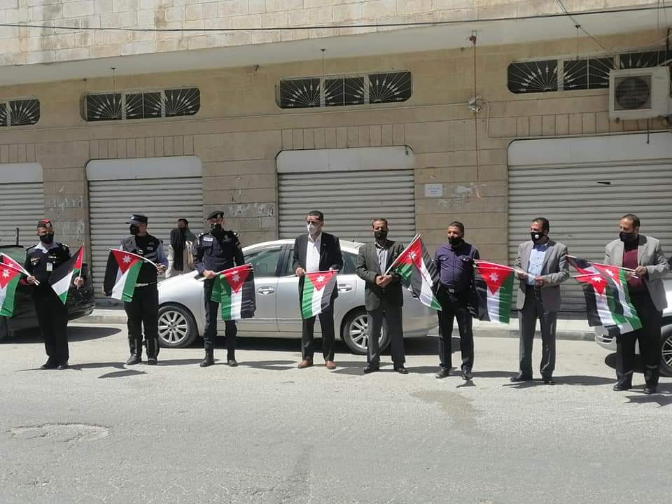 حيث قامت الشرطة المجتمعية في مديرية شرطة غرب معان وبالتعاون مع مديريتي تربية الشوبك والبترا وضمن احتفالات المملكة بمئوية التأسيس بتوزيع العلم الاردني على المواطنين وسائقي المركبات ضمن "مبادرة "علمنا عال".