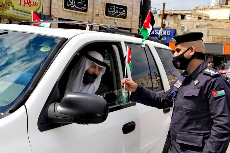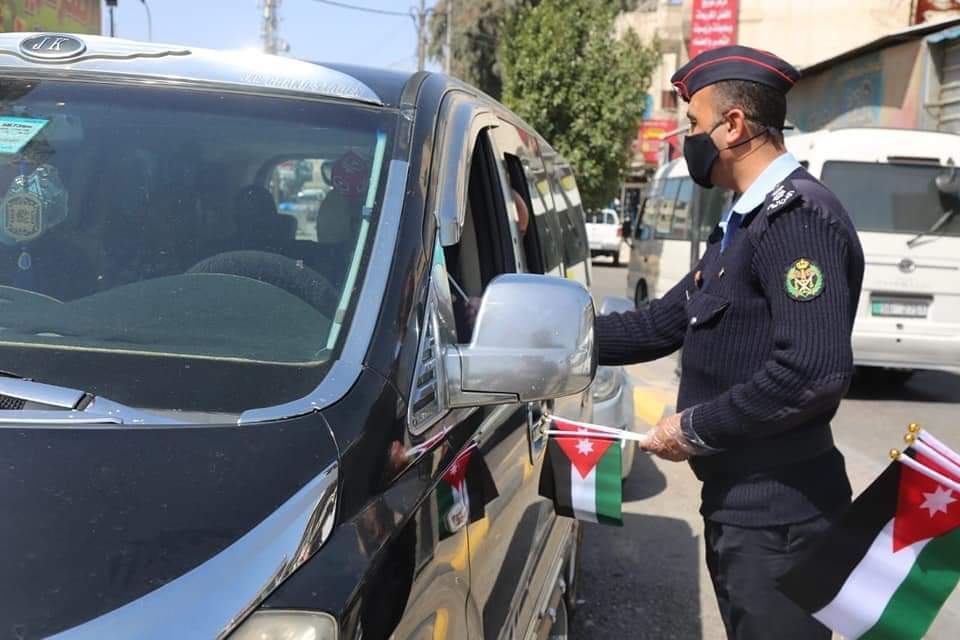 أهدى نشامى ونشميات مديرية الأمن العام اليوم العلم الأردني للمواطنين المارة وفي المركبات، في الأسواق والشوارع العامة.