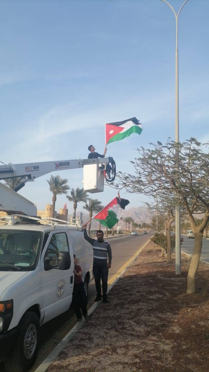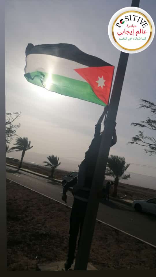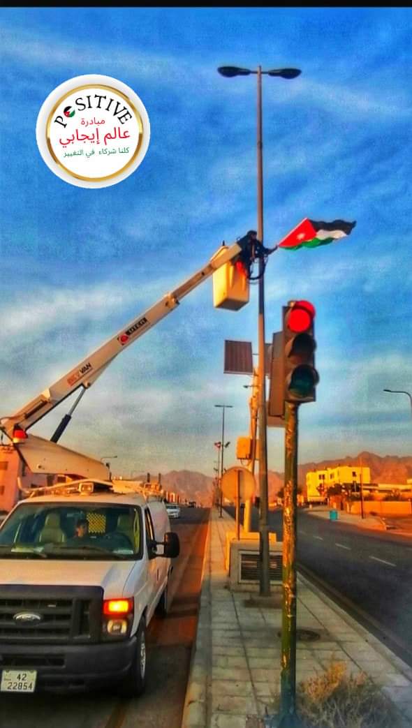 شارك أعضاء مبادرة عالم إيجابي اليوم الخميس وبالتعاون مع محافظة العقبة و مديرية ثقافة العقبة وبمساندة من شركة كهرباء العقبة وبدعم من مؤسسة امواج للتعقيم بتزيين عدة شوارع رئيسية في العقبة بالعلم الاردني وذلك ضمن احتفالات المملكة بيوم العلم الاردني الذي يصادف السادس عشر من هذا الشهر